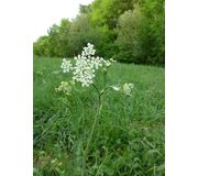 Der Wald-Sanikel hat einen doppeldoldigen Blütenstand, wobei die kleinen, weissen Döldchen eine halbkugelige Gestalt aufweisen. Die mit Haken ausgestatteten Klettfrüchte reifen von August bis Oktober und bleiben an Tieren (und Menschen) hängen und werden dadurch verbreitet.