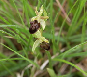 Diese wunderschöne Orchidee verbirgt sich im mastigen Gras unter Obstbäumen. Die Täuschblume ahmt eine Solitärbiene nach und versendet Feromone, die den Sexualduftstoffen der jeweiligen Bienen ähneln. Pflanzen und Insekten stehen oft in symbiotischer Beziehung.