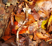 Nur auf frischen, noch unbewachsenen Brandstellen. Der Hut bildet schon jung einen Nabel aus, der bald zu einem Trichter wird. Das Bild zeigt noch junge Exemplare. Die hellen Lamellen bilden einen starken Kontrast zum braunen Hut und zum Stiel, letzterer wird im Alter kahl.